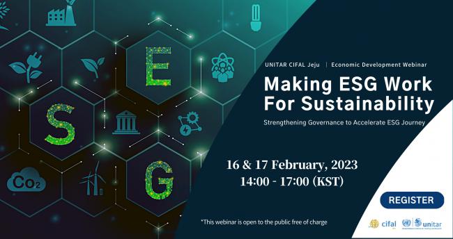 [한라일보] 유엔훈련연구기구(UNITAR) 제주국제연수센터가 주최하는 국제 역량 강화 워크숍이 'ESG 지속가능경영 (Making ESG Work for Sustainability)'을 주제로 16일부터 17일까지 2일간 온라인으로 개최된다.