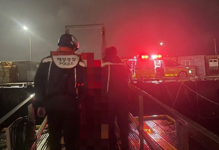 지난 15일 제주해경 대원들이 조업 중 손가락이 절단된 선원을 연안구조정을 이용해 이송, 제주항에 대기 중이던 119 구급대에 인계하고 있다. 제주해양경찰서 제공