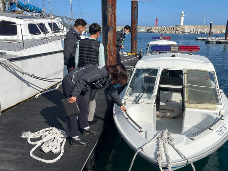 제주해양경찰서는 22일 동력수상레저기구 조종면허실기시험장에 대한 현장 점검을 실시했다. 제주해경서 제공