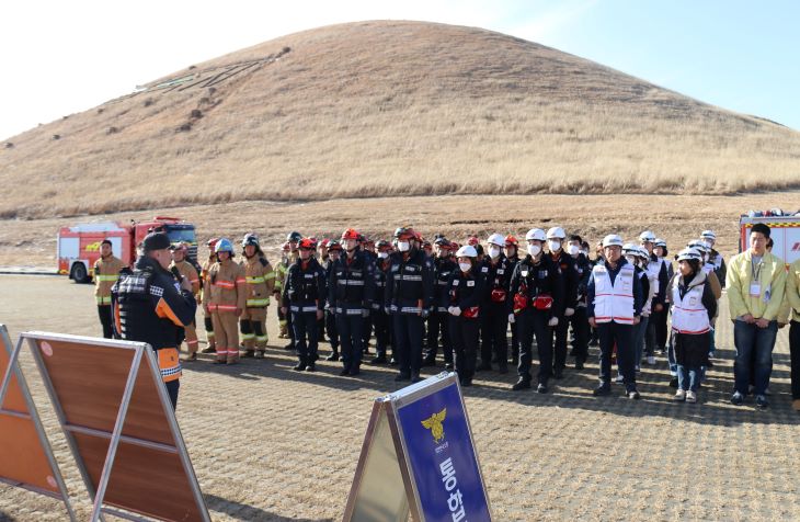 28일 제주시 애월읍 새별오름 일대에서 제주서부소방서 주관 들불축제 대비 긴급구조 불시 훈련이 실시되고 있다. 서부소방서 제공