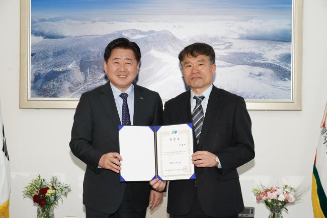 한편, JTP는 제주벤처마루 10층 대강당에서 전 직원이 참석한 가운데 문용석 신임 원장 취임식을 열고, 향후 경영방향에 대한 의견을 교환했다.
