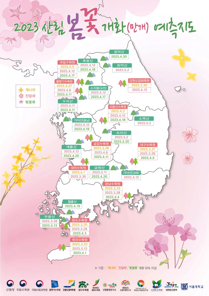 산림청 '2023년 봄꽃 개화 예측지도' 발표