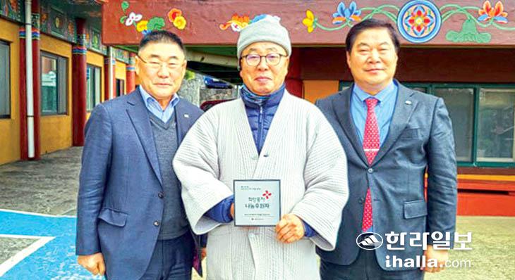 대한적십자사제주특별자치도지사(회장 정태근)는 지난 3일 제주시 애월읍 소재 선운정사(주지 지울스님)에서 적십자 희망풍차 나눔 명패 전달식을 가졌다.