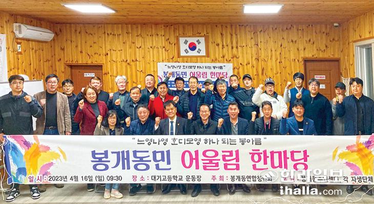 봉개동(동장 김문규)과 봉개동연합청년회(회장 주광식)는 지난 7일 "느영나영 혼디모영 하나 되는 봉아름"이라는 슬로건으로 봉개동민 어울림 한마당 대회 상황실 개소식을 가졌다.