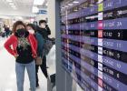 5일 오전 강풍특보로 제주공항의 항공편 결항이 속출했다. 강희만 기자