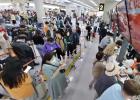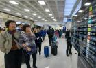 18일 제주에 강한 바람이 불면서 제주국제공항을 오가는 항공기가 무더기 결항된 가운데 공항 발권 창구가 대체편을 구하려는 승객들로 붐비고 있다. 강희만기자