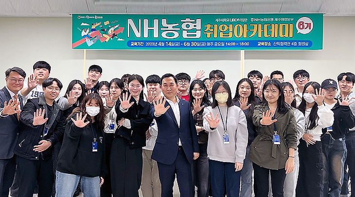 제주대학교 LINC3.0사업단(단장 강태영)은 지난 14일 제주대학교 산학협력관에서 NH농협은행 임직원들이 직접 강사로 나서는 'NH농협 취업아카데미 6기' 개강식을 개최했다.