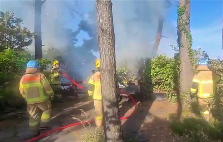 지난 27일 서귀포시 강정동 서건도에서 발생한 화재를 소방대원들이 진화하고 있다. 서귀포소방서 제공