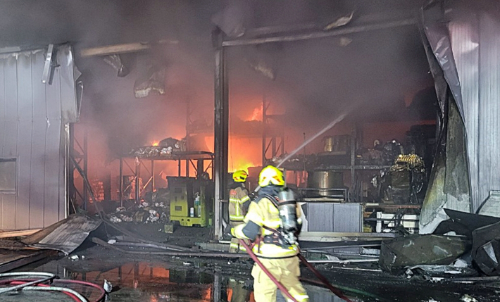 제주시 봉개동 모 식품 가공공장 화재 당시 모습. 제주도소방안전본부 제공