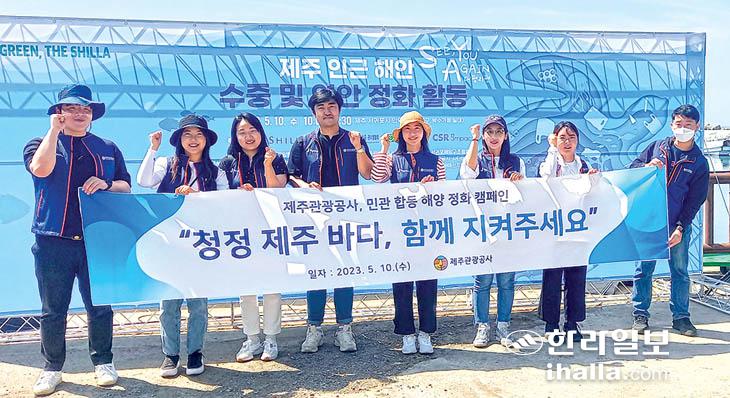 제주관광공사는 지난 10일 서귀포시 안덕면에 위치한 대평포구 및 박수기정에서 '청정 제주 바다'의 중요성에 공감하고 해양생물 서식지 및 개체수 보호에 동참하기 위한 민관 합동 해양 정화 캠페인을 실시했다.