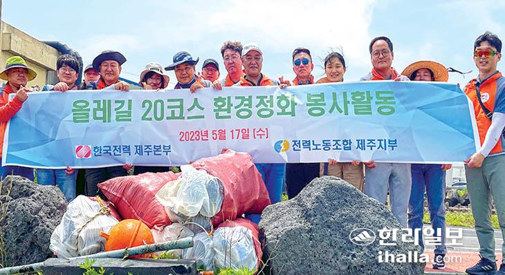 한전제주본부(본부장 백남길, 지부위원장 고현석)는 지난 17일 지속적인 해양쓰레기 증가로 인해 올레길 20코스 환경정화 봉사활동을 시행했다.