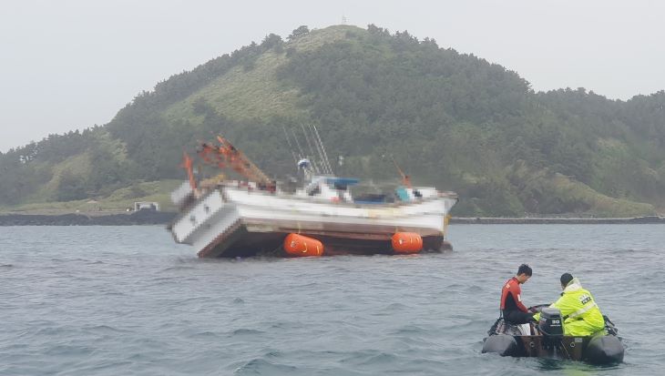 지난 22일 제주시 한림읍 비양도 인근 해상에서 좌초된 어선 A호의 모습. 제주해양경찰서 제공