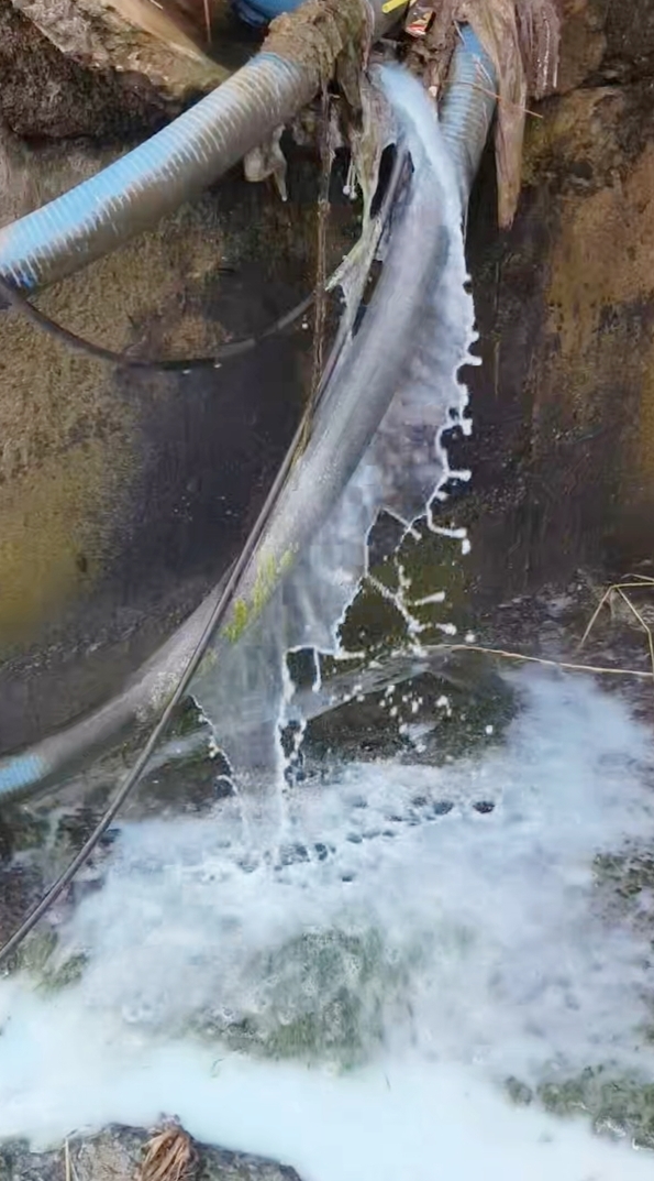 우수들이 모여 들어 바다로 방류되는 방류관에서 하얀색 페인트가 유출되는 모습. 제주시 제공