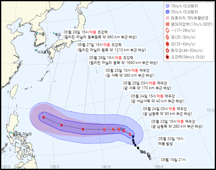 제2호 태풍 '마와르' 이동 예상 경로.