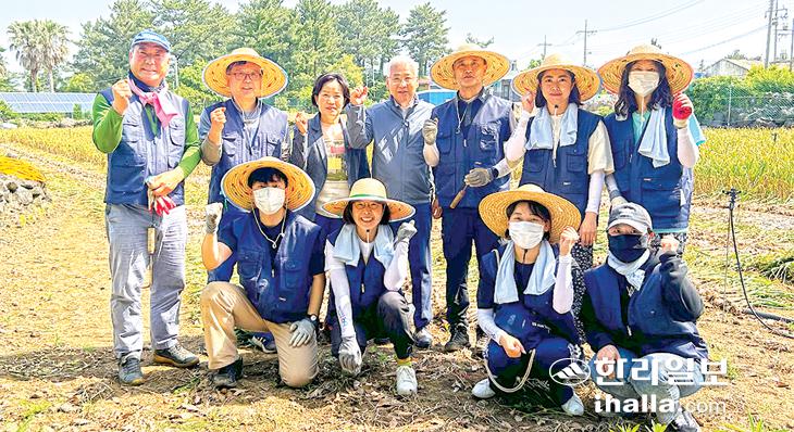 이날 봉사활동은 제주지역 봄철 최대 농번기인 마늘·양파 수확시기를 맞이해 일손이 부족한 농가의 어려움을 함께하기 위해 마련됐다.