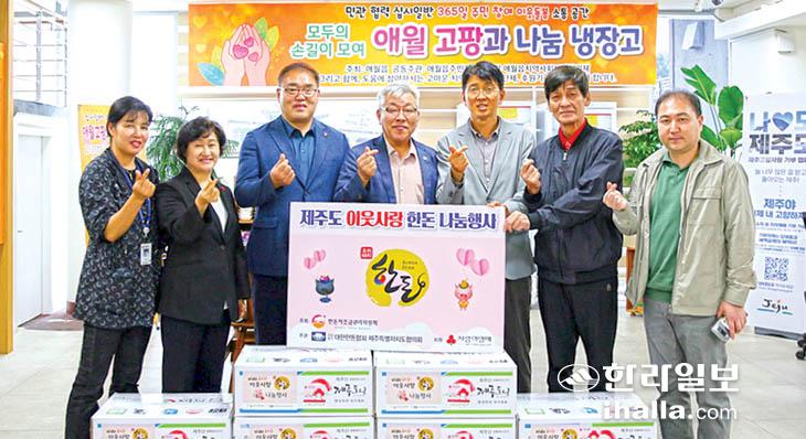 대한한돈협회 제주특별자치도협의회(회장 김재우)는 지난 22일 제주시 애월읍사무소(읍장 김기완)에서 '제주도 이웃사랑 한돈 나눔행사'를 갖고 한돈 100㎏을 제주사회복지공동모금회(회장 강지언)에 기탁했다.