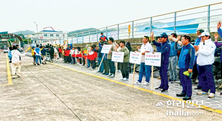 제주시 우도면(면장 김재종)에서는 지난 22일 천진항에서 각 자생단체와 우도초등학교(교장 이강식) 학생 등 50여 명이 참여해 입도 관광객들을 대상으로 '2040 플라스틱 제로 우도 프로젝트' 일환으로 1회 용품 대신 다회 용품 사용을 권장하는 결의대회를 개최했다.