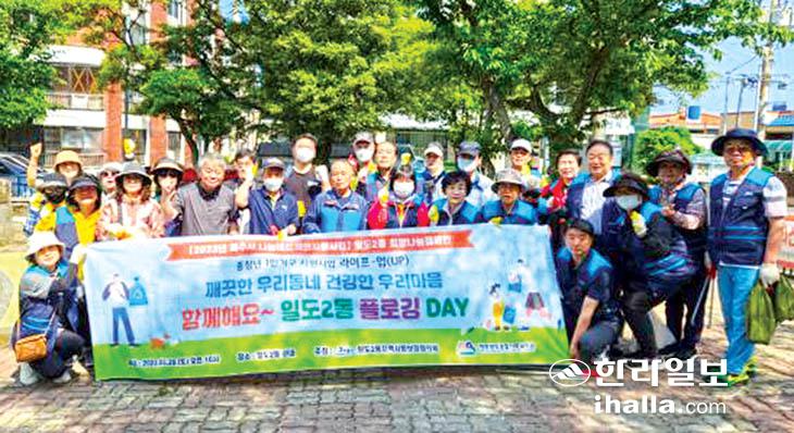 제주시 일도2동지역사회보장협의체와 영락종합사회복지관은 지난 20일 '중장년 1인 가구 라이프-업' 프로그램의 일환으로 '깨끗한 우리 동네, 건강한 우리 마음'을 위한 플로깅 활동을 실시했다.