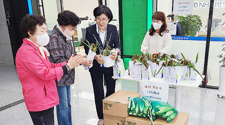 NH농협은행 남문지점(지점장 고종호)은 지난 8일 벤처마루 1층 로비에서 초당옥수수 나눔 행사를 실시했다.