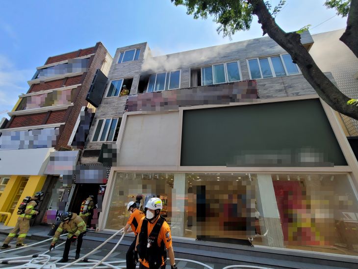 지난 11일 발생한 제주시 연동 원룸 화재를 소방대원들이 진화하고 있다. 제주소방서 제공