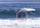 김찬우 경사와 서프구조대가 12일 서귀포시 중문해수욕장에서 발생한 익수자 2명을 구조하고 있다. 서귀포해양경찰서 제공