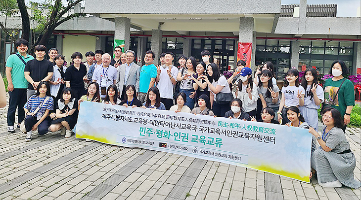 제주도교육청은 이달 10~13일 청소년 평화공감 도전 프로젝트를 수행하는 제주4·3동아리 활동 학생 19명과 4·3평화·인권교육지원단 등 6명이 대만을 방문해 민주·평화·인권 교육 교류를 실시하고 있다고 밝혔다. 제주 학생과 교사들은 이 기간 타이난 2·28기념관, 타이난 문학관, 국가인권박물관, 국가인권위원회, 2·28국가기념관, 국가문서국 등을 찾는다.