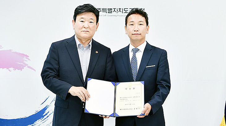 이정석 한국관악협회 제주도지회장이 지난 12일 가칭 '제주특별자치도교육청 장애인예술단' 지휘자에 임용됐다. 김광수 교육감은 이날 신임 이정석 지휘자에게 임용장을 수여했다.