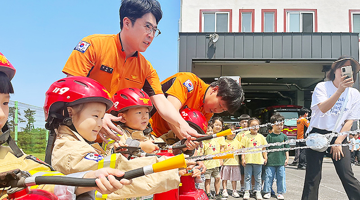 이번 체험은 어린이들 눈높이에 맞춰 소화기 사용법, 화재 발생 시 행동요령을 비롯해 소방차량 탑승 등 체험 위주의 프로그램으로 진행됐다.