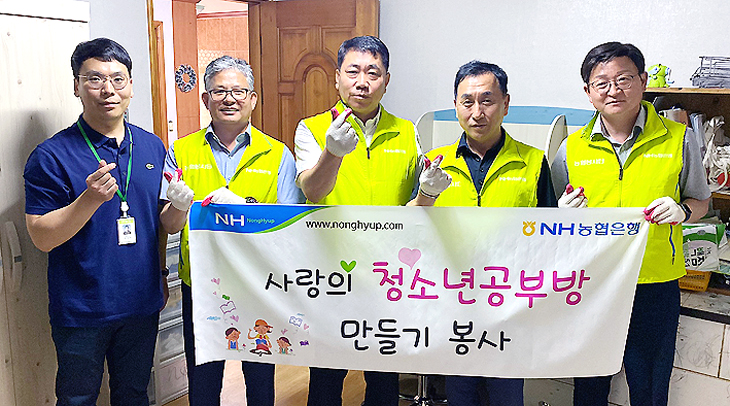 NH농협은행 제주본부(본부장 고우일) 직원 봉사단은 지난 13일 제주시 외도동 소재 형편이 어려운 가정을 찾아 'NH꿈틀 사랑의 공부방'을 만들어 줬다. 이날 봉사단은 청소년이 꿈을 펼칠 수 있도록 책상과 의자 등을 직접 설치·전달했다. 농협은행은 2013년부터 저소득 청소년들을 위해 꿈이 자라나는 틀(공부방)을 만들어주는 봉사활동을 꾸준히 이어오고 있다.
