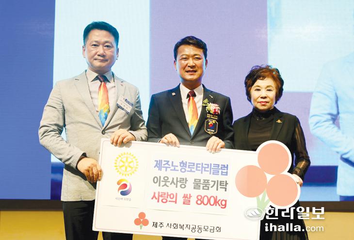 국제로타리3662지구 제주노형로타리클럽(취임회장 송용호·이임회장 부영석)은 지난 21일 메종글래드 제주에서 회장 및 임원, 이사 이·취임식을 열고 사랑의 쌀 800㎏을 제주사회복지공동모금회(회장 강지언)에 기탁했다.