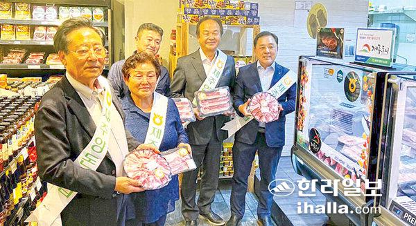 제주양돈농협(조합장 고권진)은 지난 5월 제주도니 돼지고기를 두바이로 수출한데 이어 지난 20일 두바이 현지에서 한인마트 '1004 Gourmet(대표 신동철)'와 제주산 돼지고기 수출 확대를 위한 업무협약식을 체결했다.