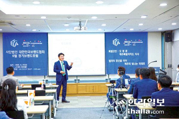 오 지사는 지난 21일 서울 aT센터에서 열린'(사)대한민국브랜드협회 6월 정기 브랜드포럼'의 특별강연자로 나서 제주만의 강점을 수도권 기업들에게 적극 홍보했다.