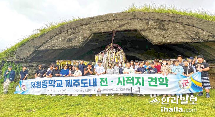 제주특별자치도재향군인회(회장 김달수)는 호국보훈의 달을 맞아 지난 21일 저청중학교 전교생과 교직원 등 62명과 함께 대정읍 일원 군 및 전쟁 관련 유적지를 답사하는 '찾아가는 나라사랑 교육 프로그램'을 진행했다.
