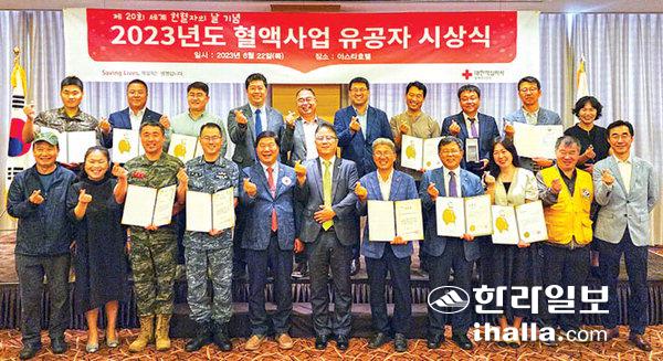 대한적십자사 제주특별자치도혈액원(원장 김영섭)은 22일 아스타호텔에서 40여명이 참석한 가운데 제20회 세계헌혈자의 날 기념 '2023년도 혈액사업 유공자 시상식'을 개최했다.