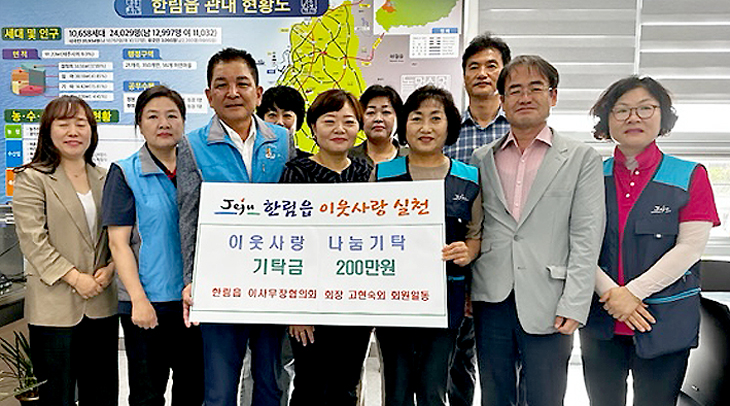 제주시 한림읍이사무장협의회(회장 고현숙)는 지난 22일 한림읍사무소를 찾아 어려움을 겪고 있는 이웃을 위해 사용해 달라며 지난 5월 열린 국수 나눔 행사 판매 수익금 200만원을 기탁했다.
