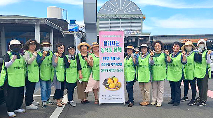 (사)한국부인회제주특별자치도지부(지부장 고순생)는 지난 22일 제주시민속오일시장에서 '로컬푸드 지역농산물 소비 확대' 홍보 캠페인을 도민 관광객 등 400명을 대상으로 진행했다.