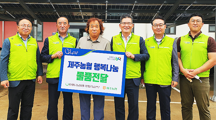 농협제주본부(본부장 윤재춘)는 26일 농촌지역에 위치한 복지시설 3곳을 찾아 시설 이용자를 위한 NH행복나눔물품을 전달했다. 이번 물품 지원 복지시설은 시설이 위치한 지역농협(대정농협, 안덕농협, 성산일출봉농협)의 추천으로 ▷대정읍 관심있는 재활재가 노인주간보호센터에 식기세척기, 적외선소독기 ▷안덕면 노인대학에 디지털 칼라복합기 ▷성산읍 신산리 마을회관에 노래방기계 세트를 전달했다.