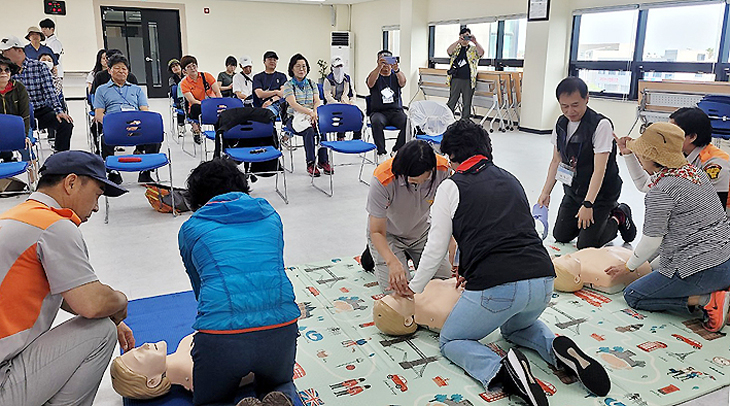 제주소방서 오라119센터 의용소방대(대장 백성철·홍영심)는 지난 24일 제주 관광협회 관계자를 대상으로 응급처치 및 심폐소생술 교육 등 찾아가는 도민안전 교육을 실시했다.