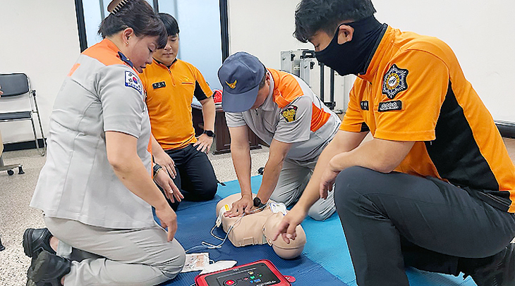 서귀포소방서 효돈119센터(센터장 김영삼)는 지난 25일 효돈의용소방대(남성대장 강갑훈·여성대장 오금숙) 수변요원들을 대상으로 심폐소생술 등 안전교육을 실시했다.