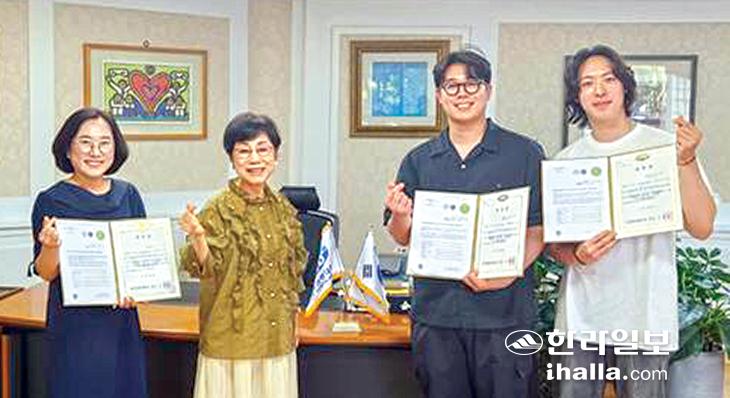 제주관광대학교(총장 김성규)는 안경광학과 3학년 강도현, 문태성 학생과 최지영 교수가 지난 6월 미국안경사협회(American Board of Opticianry)가 주관한 미국 안경사(ABO), 국제콘택트렌즈관리사(NCLE) 자격시험에 합격했다고 9일 밝혔다.