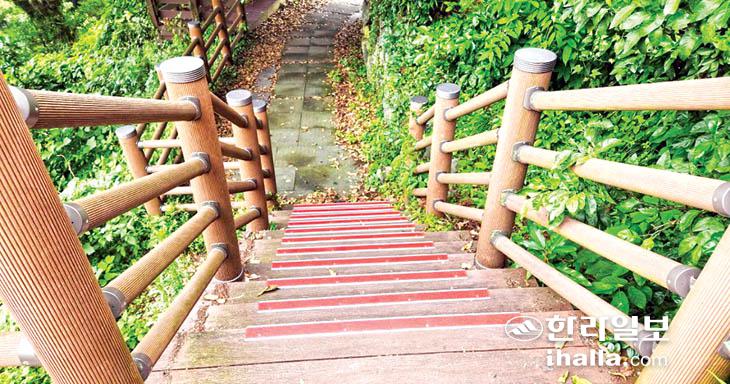 서귀포시 대천동(동장 정창용)은 엉또폭포 방문객의 안전을 위해 전망대 계단에 미끄럼 방지 시설 설치를 지난 7일 완료했다.