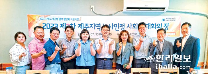 제주특별자치도 노사민정협의회는 지난 13일 제주시 소재 음식점에서 '2023 제2차 제주지역 노사민정 사회적 대화의 장'을 제주도외국인근로자지원센터, 제주도, 제주도노사민정협의회 사무국과 협의회 소속 기관 관계자 등 10여명이 참석한 가운데 열고, 외국인근로자 지원현장에서 겪는 애로사항 등 의견을 청취했다.