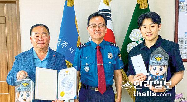 제주서부경찰서는 지난 13일 최근 특수강도 피의자 검거에 기여한 신고자와 가족에게 경찰서장 표창장 및 신고 보상금을 지급했다고 16일 밝혔다.