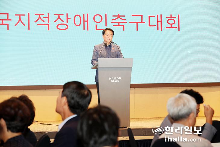 김희현 제주특별자치도 정무부지사는 지난 15일 오후 메종글래드 제주에서 열린 제13회 제주특별자치도지사기 전국지적장애인축구대회 환영연에 참석해 대회 관계자의 노고에 감사를 표하고, 참가선수들에게 응원을 전했다.
