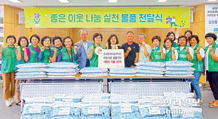 이번 물품은 오라동새마을부녀회 회원들이 어려운 이웃들의 건강한 여름나기를 돕고자 십시일반 마련한 것으로 오라동사무소를 통해 관내 어려운 이웃들에게 전달될 예정이다.