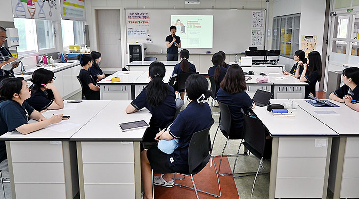 대정여자고등학교(교장 이영훈)는 19일 1, 2학년 학생들을 대상으로 2023년 과학기술 진로컨설팅 '드림톡콘서트'를 운영했다. 이번 프로그램은 과학기술분야에 대한 학생들의 관심과 흥미가 진로 탐색·설계로 연결될 수 있도록 하기 위해 실시됐다. 과학기술분야 전문가 컨설턴트와 교사 컨설턴트로 구성된 '과학기술 진로밴드'가 학생들과 직접 대화하고 해결하는 토크형 진로 컨설팅 형태로 진행됐다.