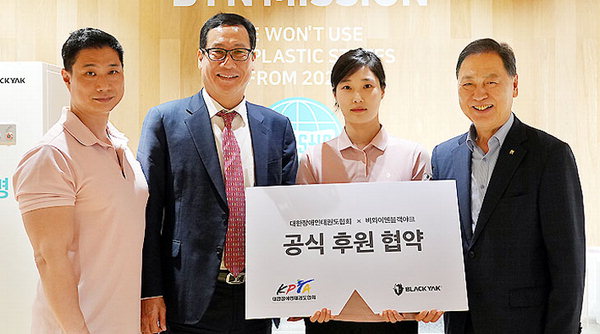 BYN블랙야크그룹(회장 강태선)은 지난 18일 서울시 서초구 블랙야크 양재 사옥에서 대한장애인태권도협회와 선수 후원을 위한 업무 협약을 체결했다.