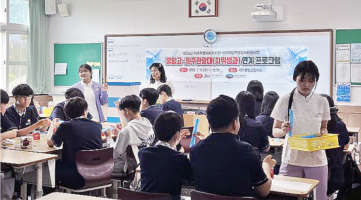 제주관광대학교(총장 김성규)는 지난 12일~13일 제주중앙고등학교 학생 400여 명을 대상으로 진로취업 체험 프로그램을 진행했다.