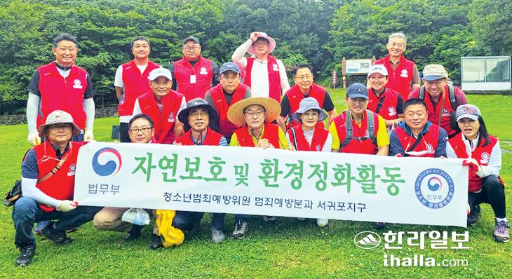 법무부 청소년범죄예방위원 제주지역협의회(회장 고영두) 범죄예방분과위원회 서귀포지구(회장 김형준)는 지난 22일 선흘에 위치한 동백동산 습지 둘레길일대에서 조영구 운영처장, 강인숙 총무 등 지구 위원 20여명이 함께한 가운데 자연보호 및 환경정화 활동을 실시했다.