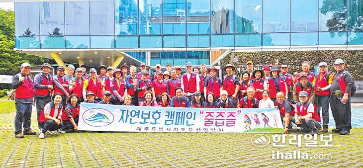제주도등산연합회(회장 고창문)는 지난 23일 임원·이사 등 70여 명이 참여한 가운데 서귀포시 대정읍 제주국제영어교육도시 일원에서 ‘줄·즙·즐’ 자연환경 정화활동을 펼쳤다.